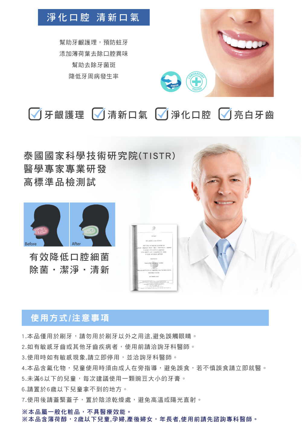 2.如有敏感牙齒或其他牙齒疾病者,使用前請洽詢牙科醫師.
