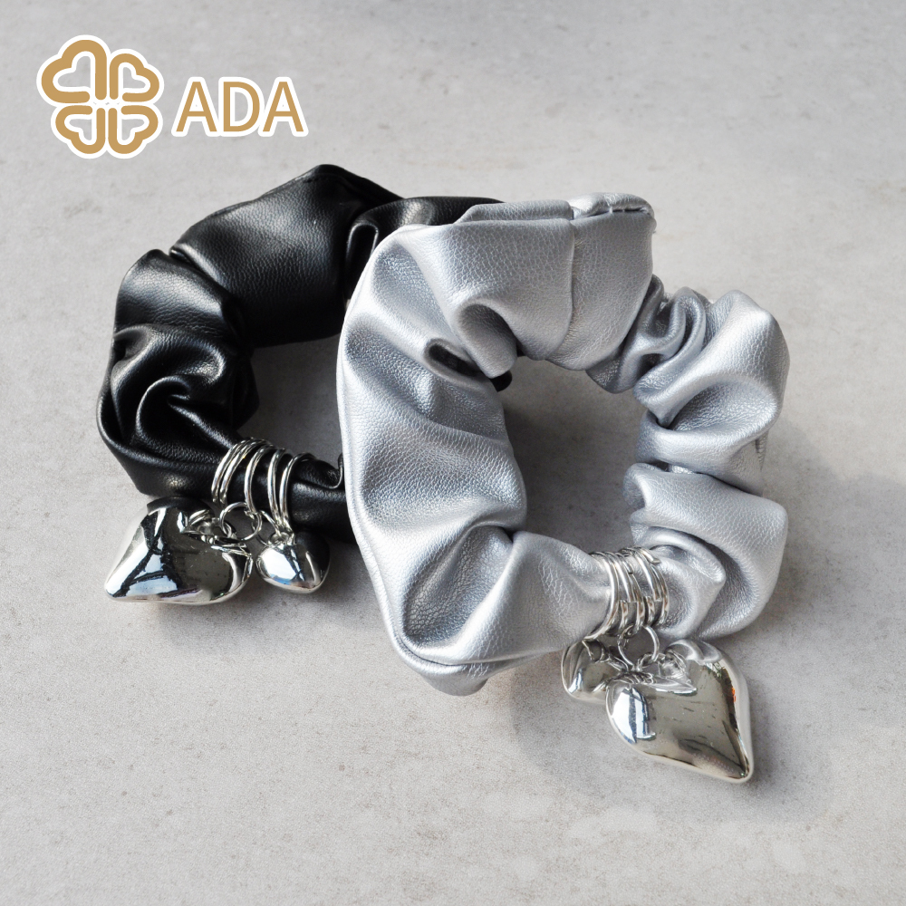 【品名】愛心吊墜髮圈(黑色/銀色)