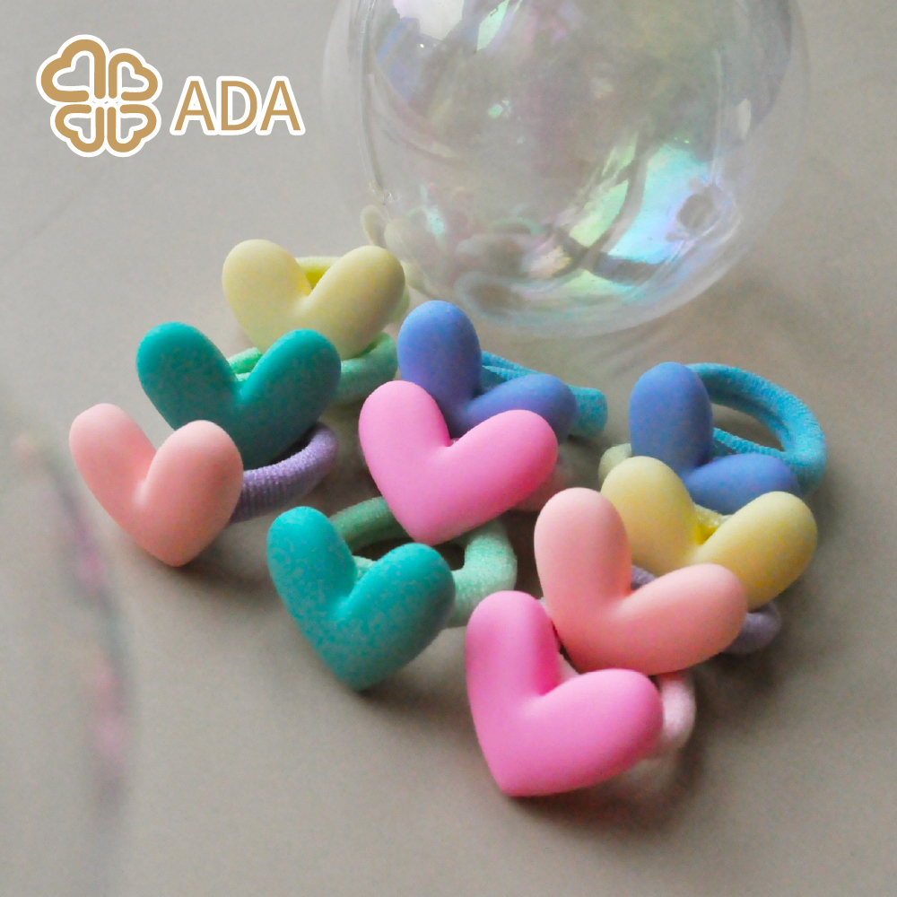 【品名】ADA小童彩色長愛心拇指髮束-混色10入