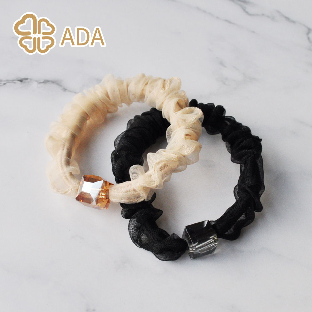 【品名】ADA紗綢帶珠髮繩(黑色)/ADA紗綢帶珠髮繩(膚色)
