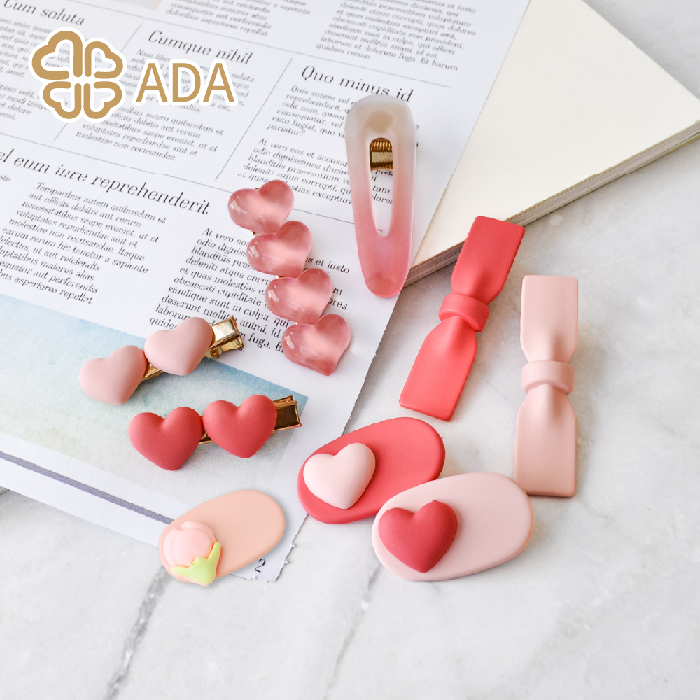 【品名】ADA 水滴愛心粉色2件組/ADA 粉色蝴蝶結髮夾2件組/ADA橢圓愛心粉色髮夾2件組
