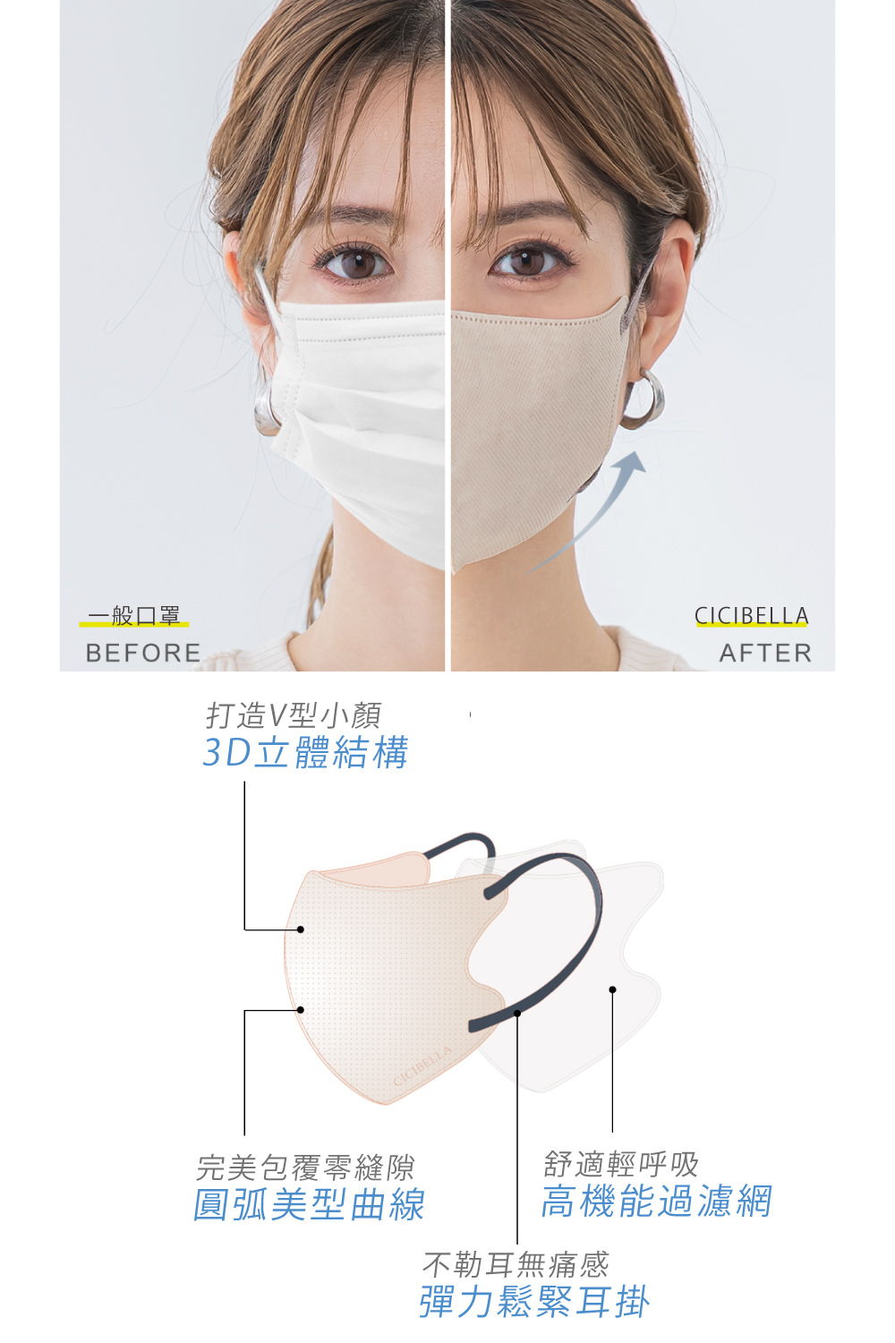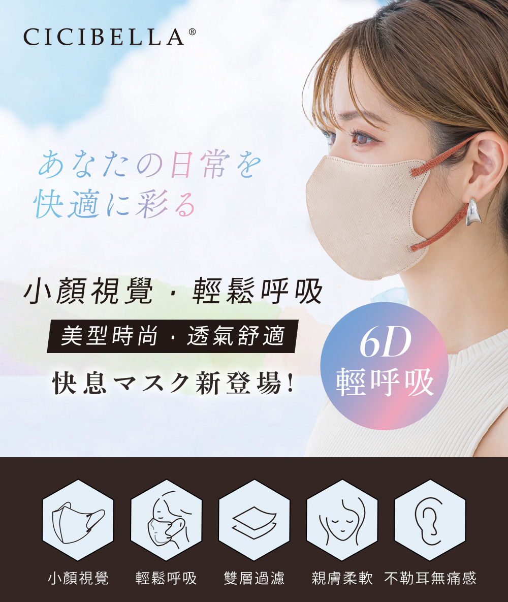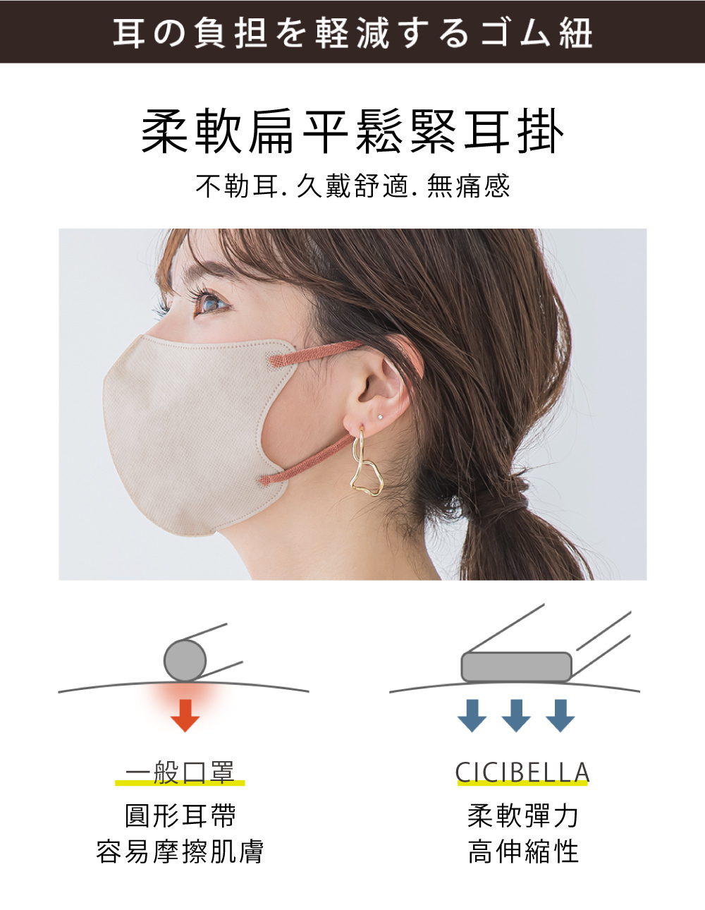 採柔軟的扁平鬆緊帶掛耳,長時間配戴舒適