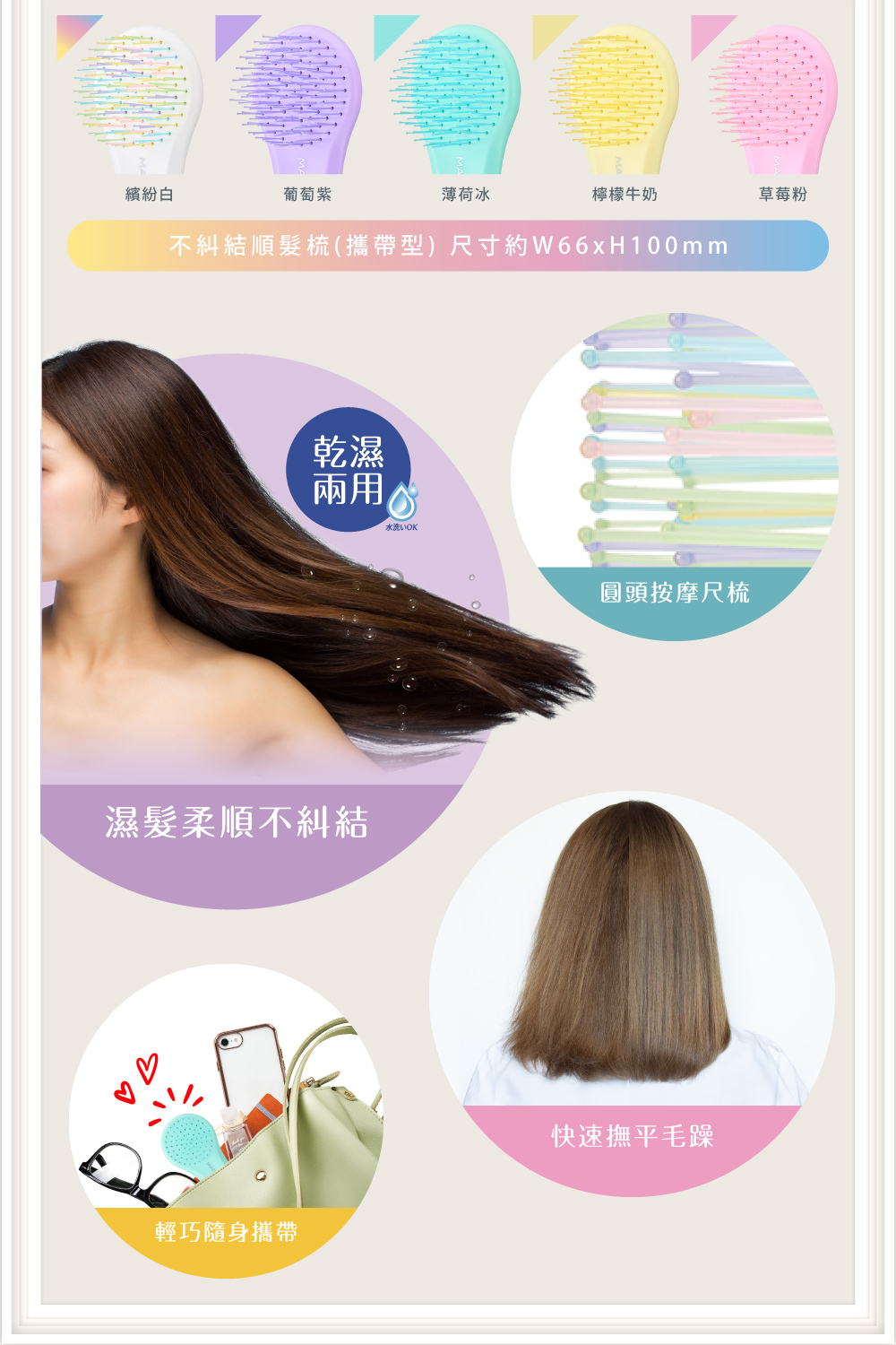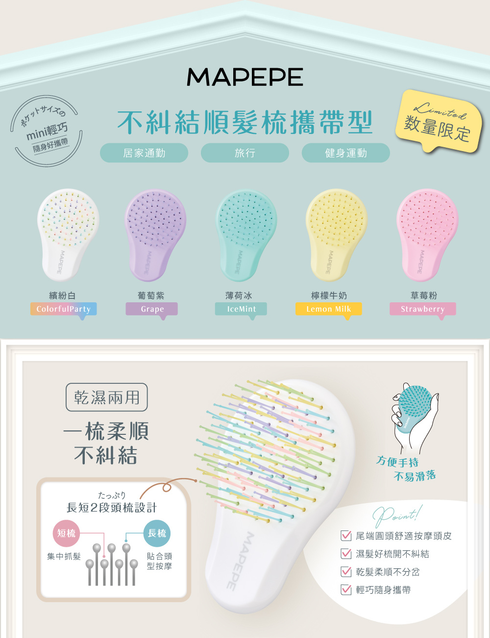 方便攜帶的迷你尺寸,適合旅行或替小孩梳頭髮時使用