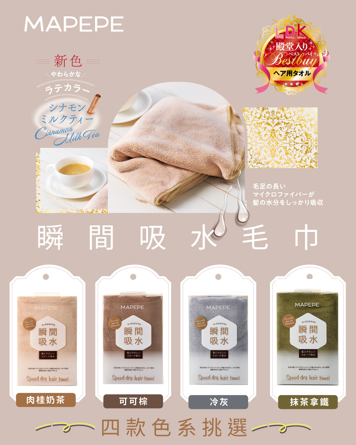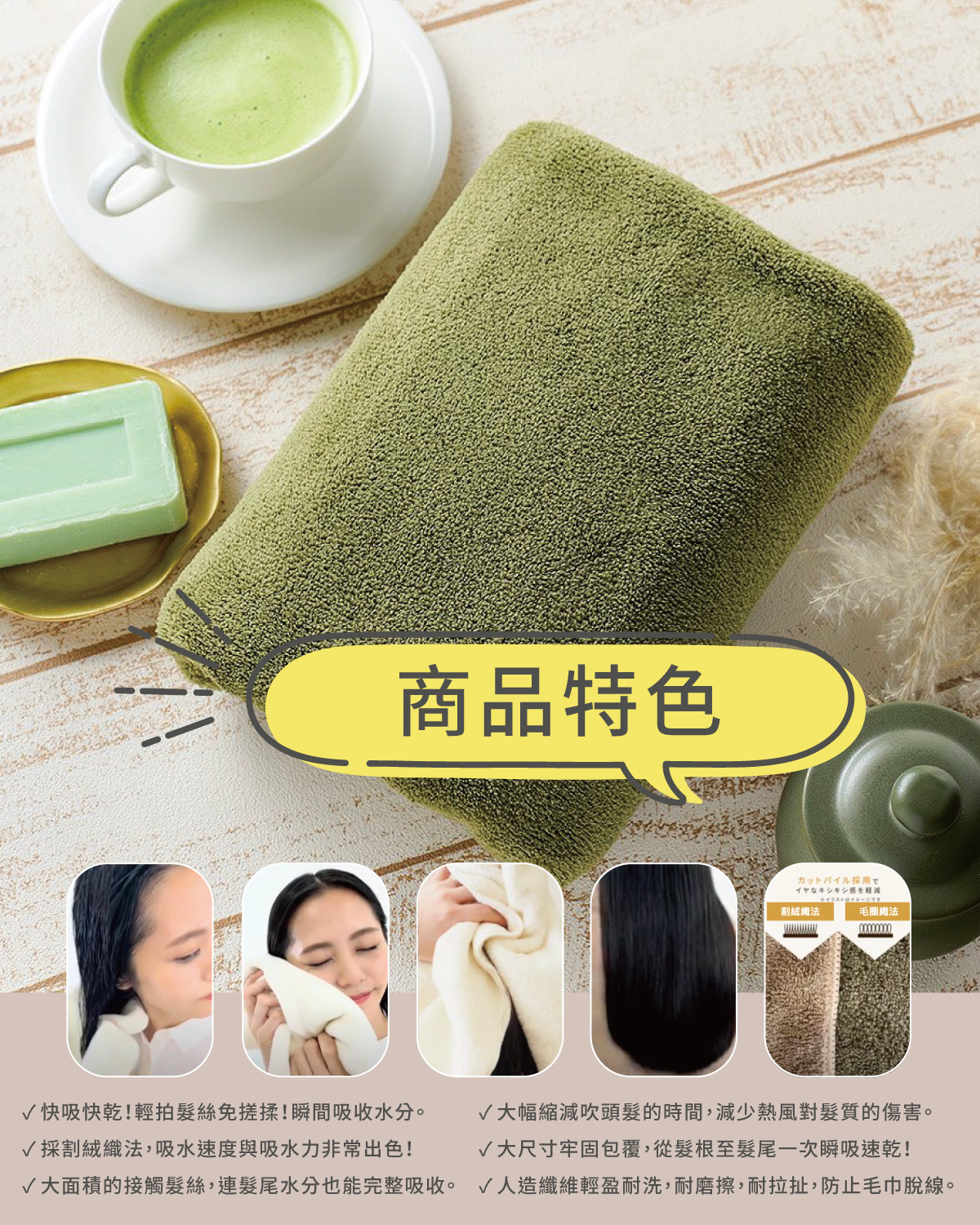 能迅速吸收髮絲間的水分.即使不用力搓揉,也能有效去除水分,頭髮不易受損!