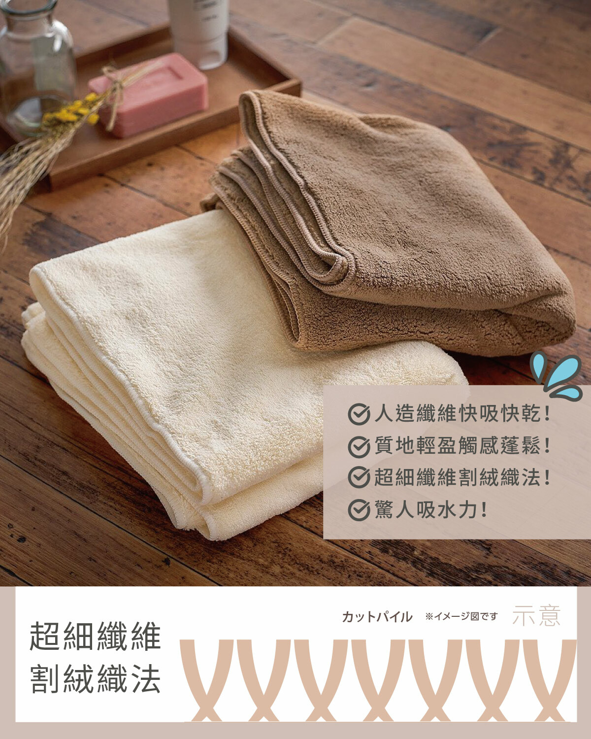 使用割絨製法減少了肌膚的刺激感.能減少頭髮被毛巾摩擦的不適感.