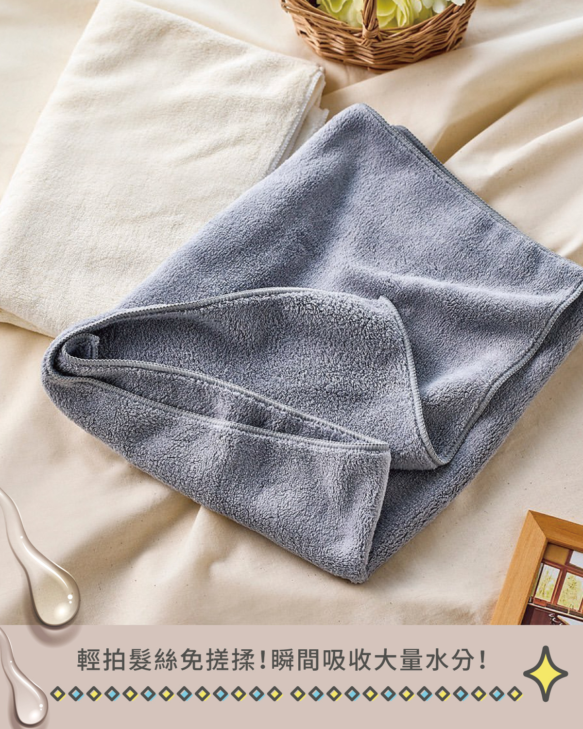 長約85公分的大型毛巾,可以完美包裹長髮不易鬆開