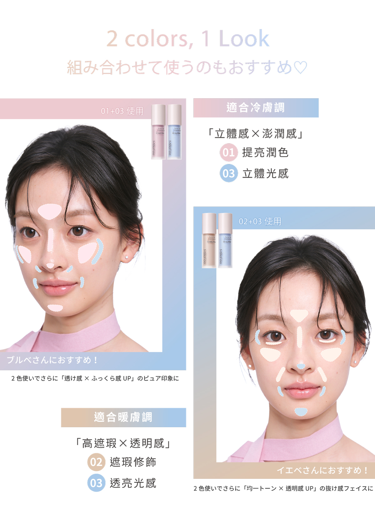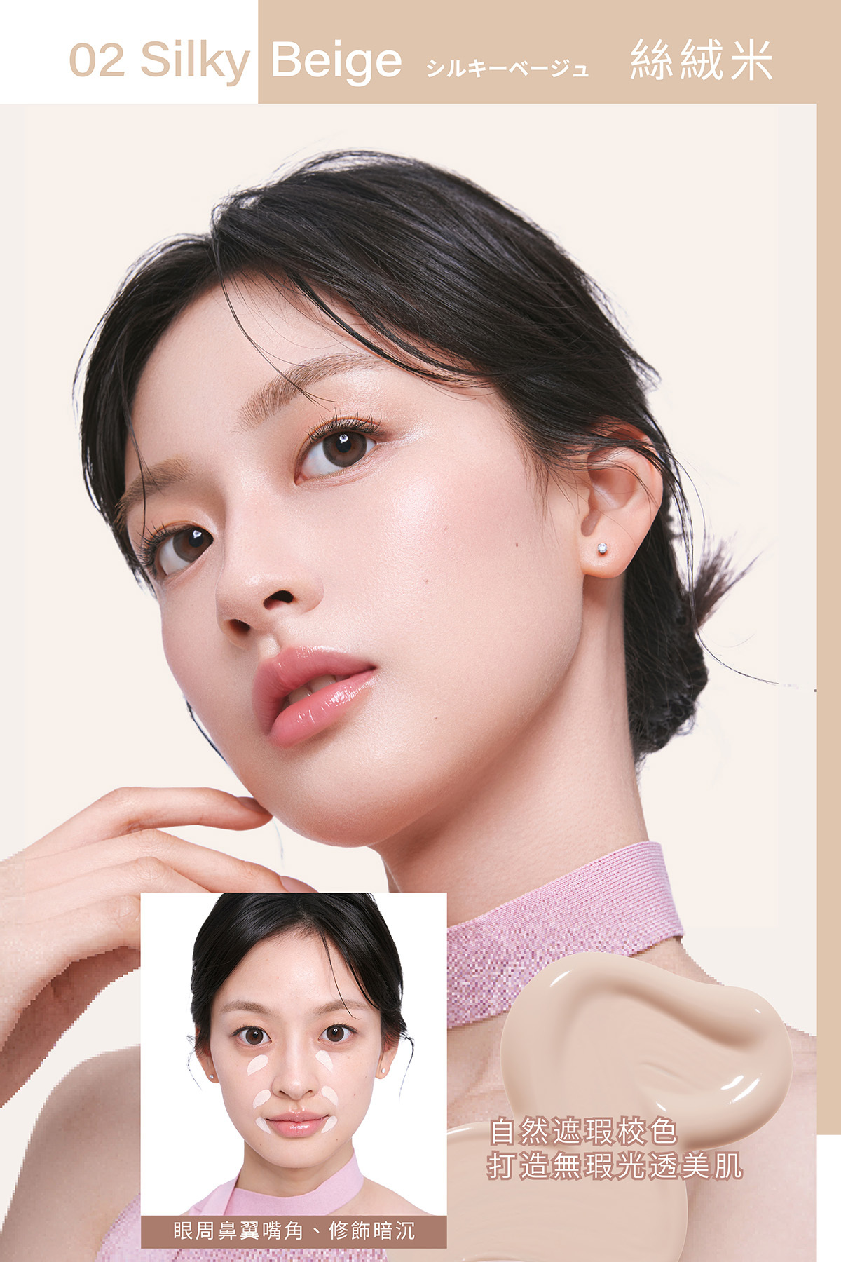 特點:自然光感!遮瑕.校色.提亮,彷彿補光神器般,校正暗沉膚色,柔滑好延展,服貼不斑駁,透亮粉嫩好氣色,雙頰粉嫩澎潤