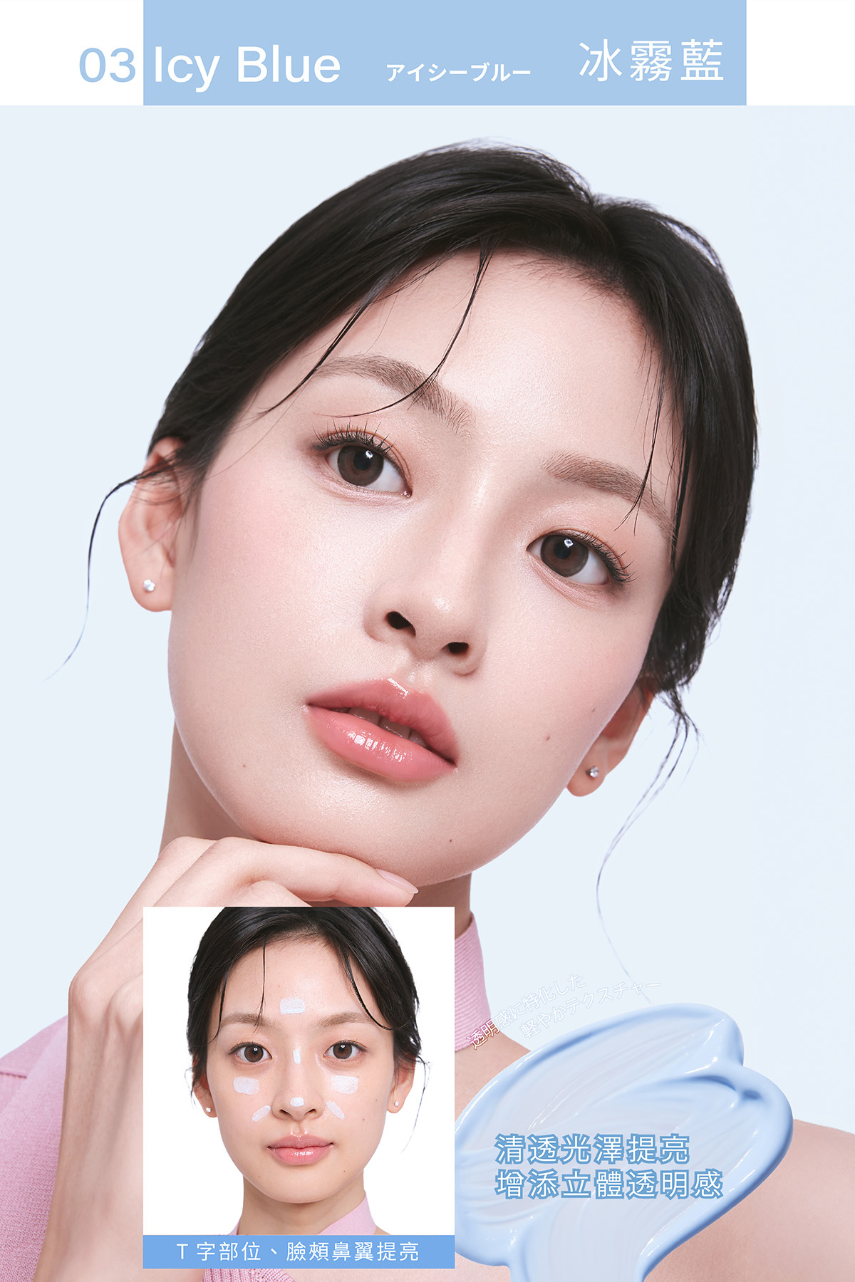 1.底妝完成後,將適量產品塗抹於想提亮的部位