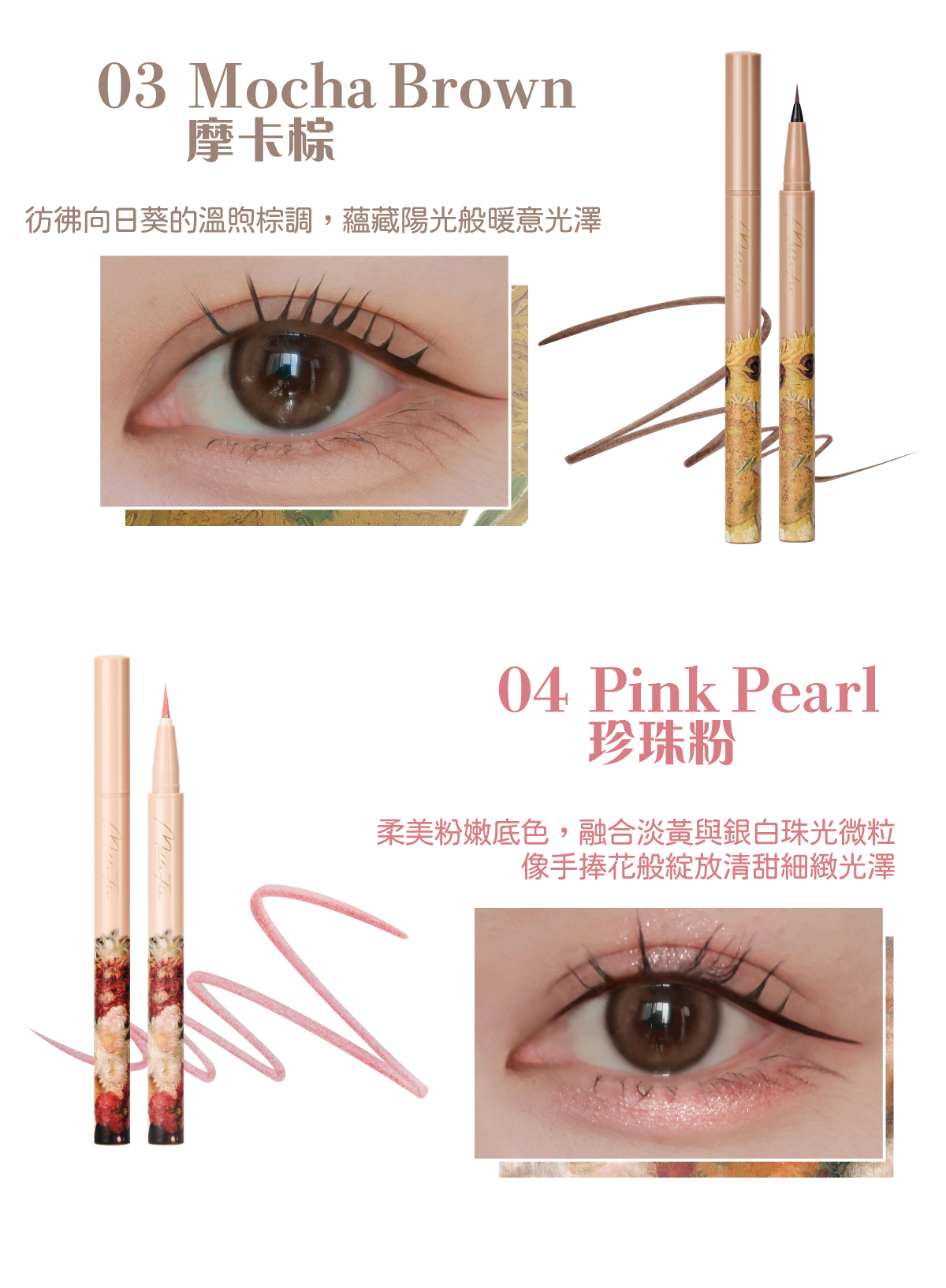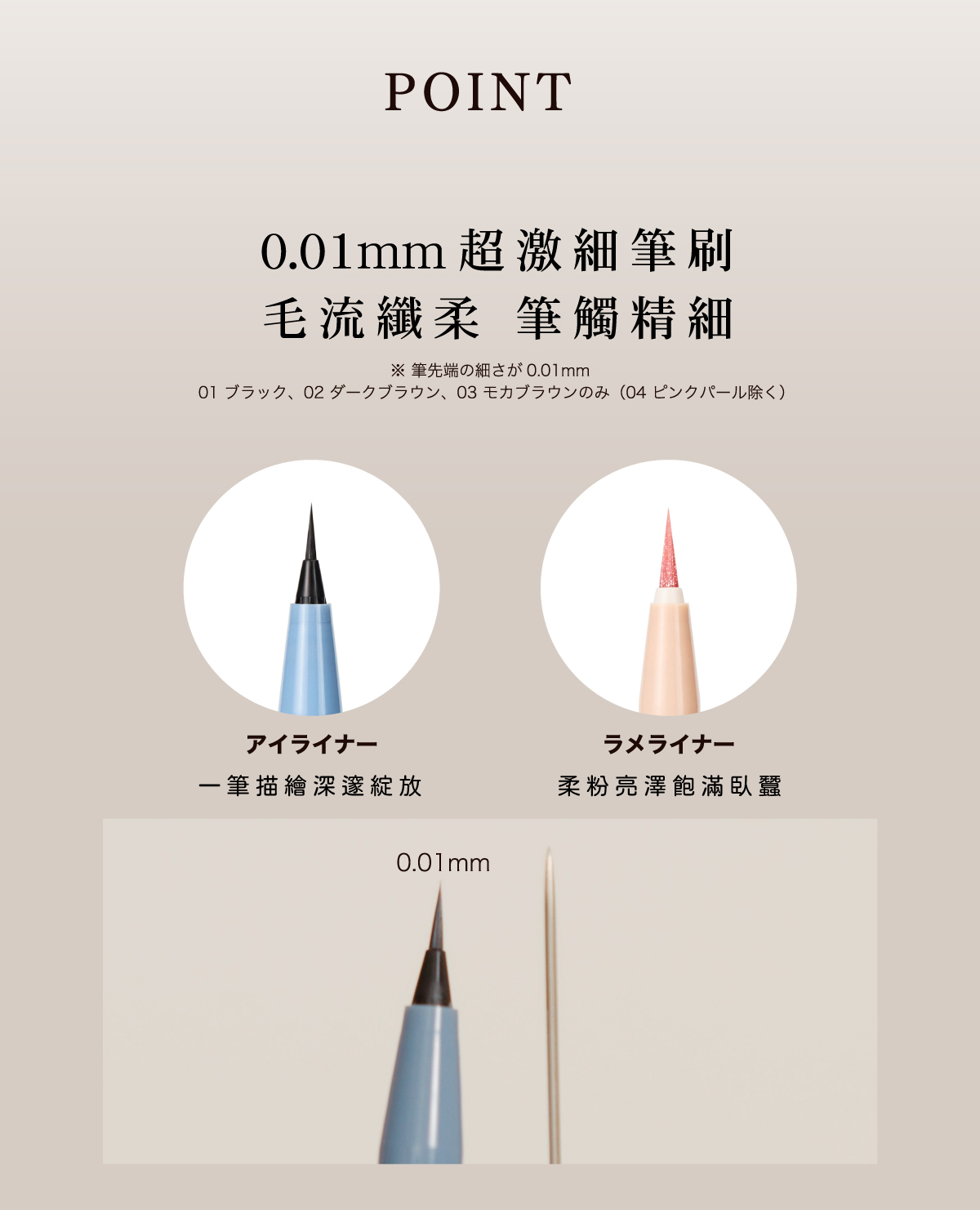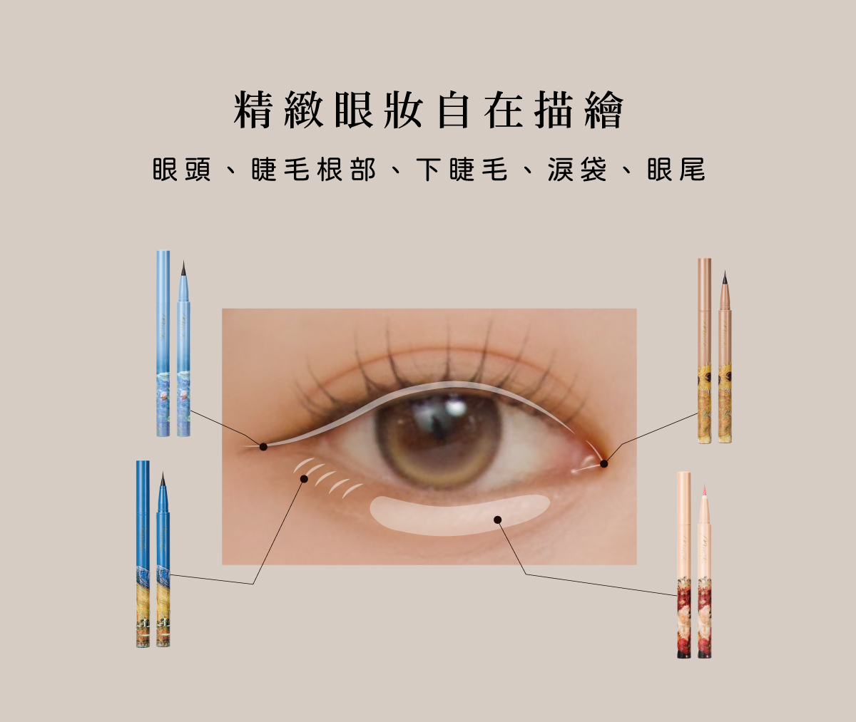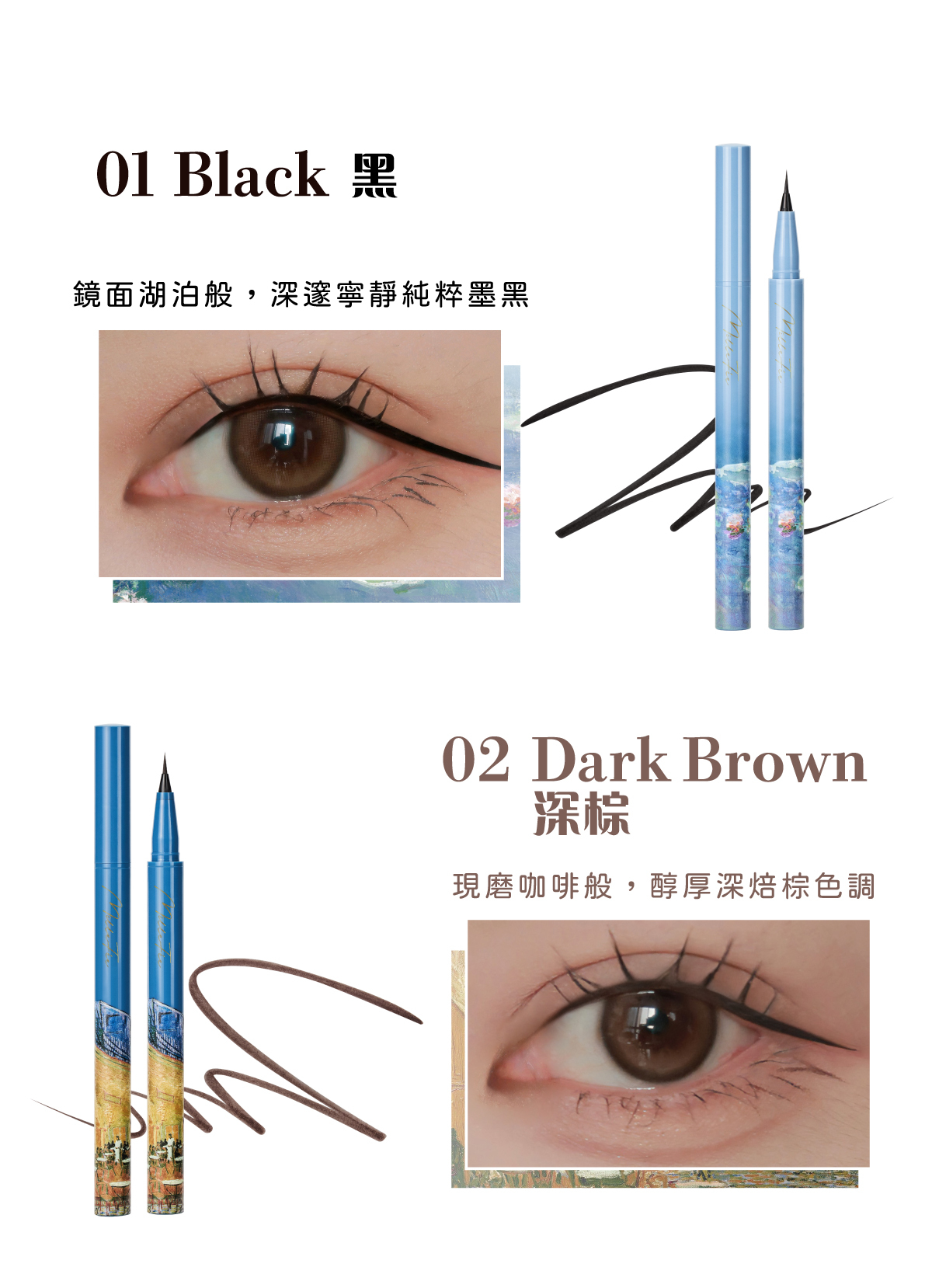特點:靈感源自藝術畫作的眼線液. 0.01mm極細筆尖刷頭,描繪精緻線條