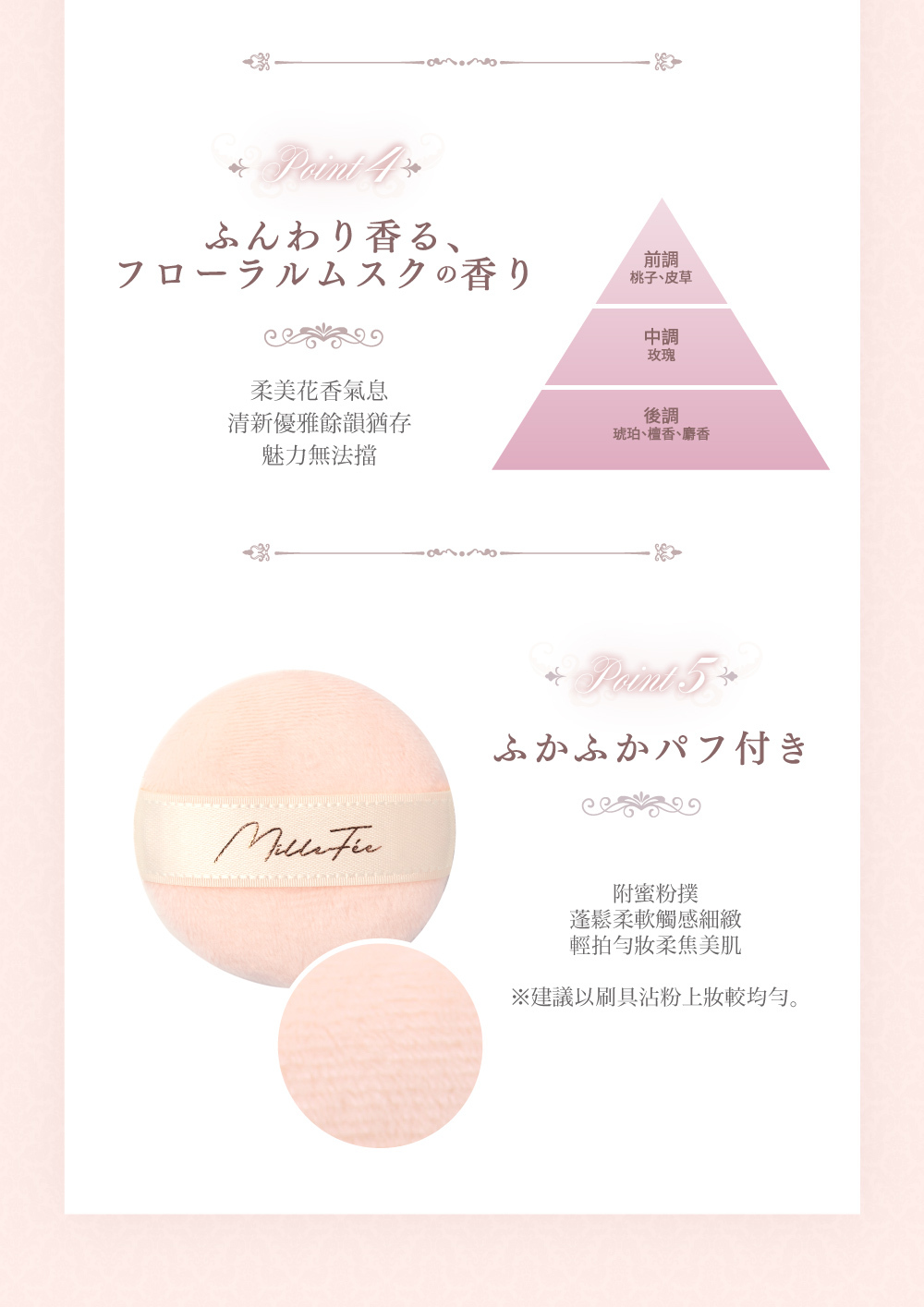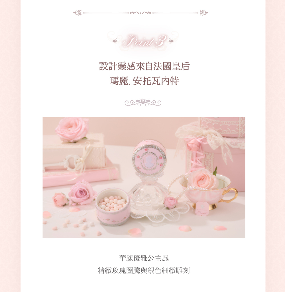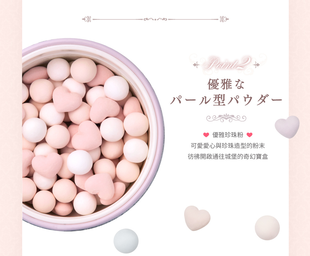 特點:華麗高雅的特色包裝,搭配心形和圓形的立體球狀粉體,彷彿打開珠寶盒般,每次使用都砰然心動!散發淡雅的花香味,付柔軟且厚實的粉撲.讓您輕鬆上妝,突顯魅力