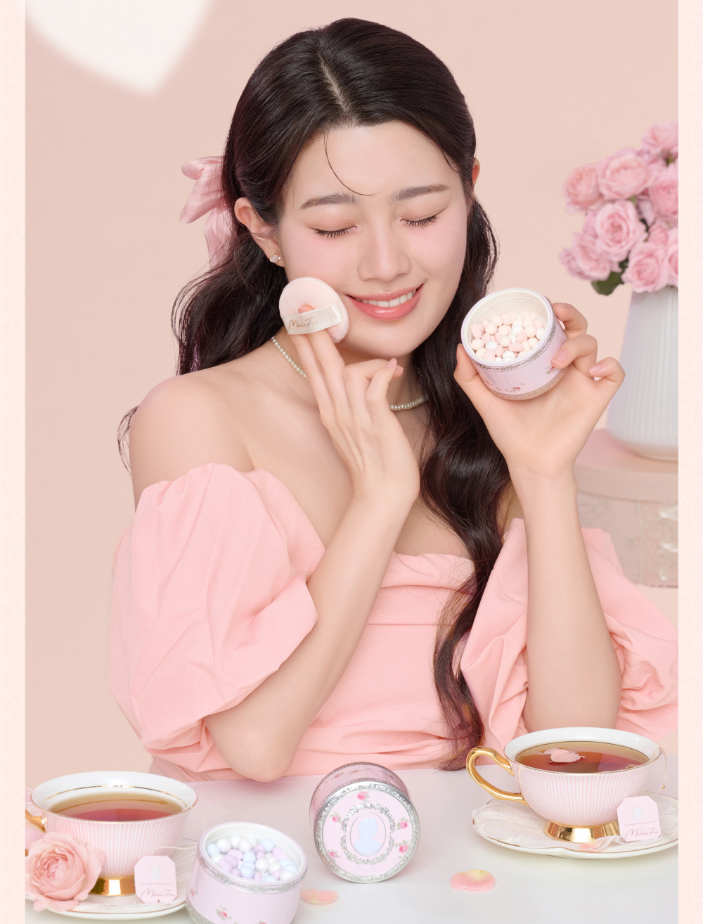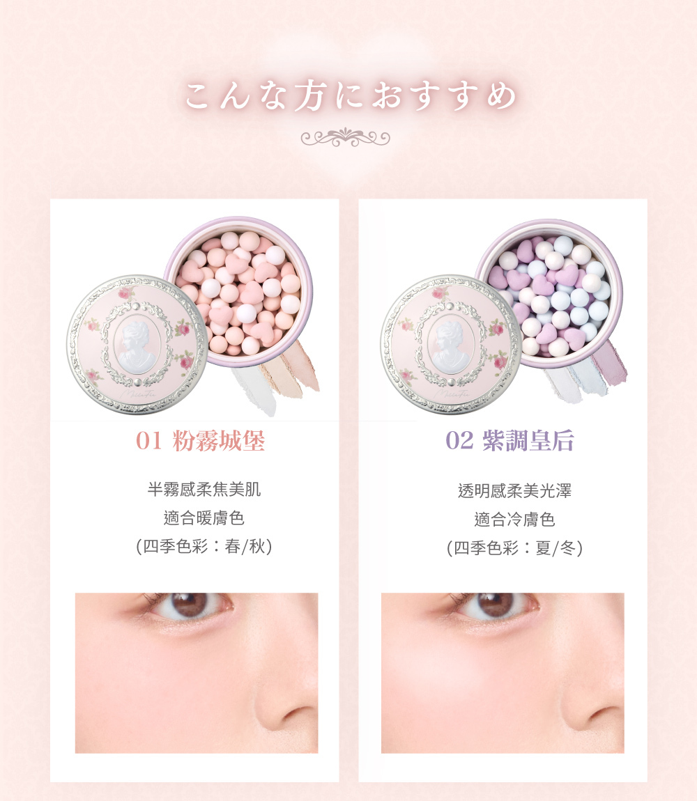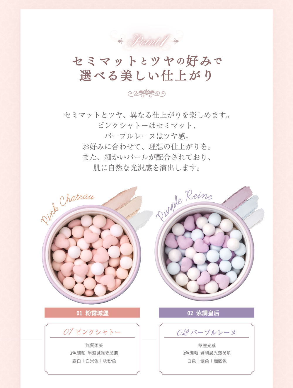 特點:華麗高雅的特色包裝,搭配心形和圓形的立體球狀粉體,彷彿打開珠寶盒般,每次使用都砰然心動!散發淡雅的花香味,付柔軟且厚實的粉撲.讓您輕鬆上妝,突顯魅力