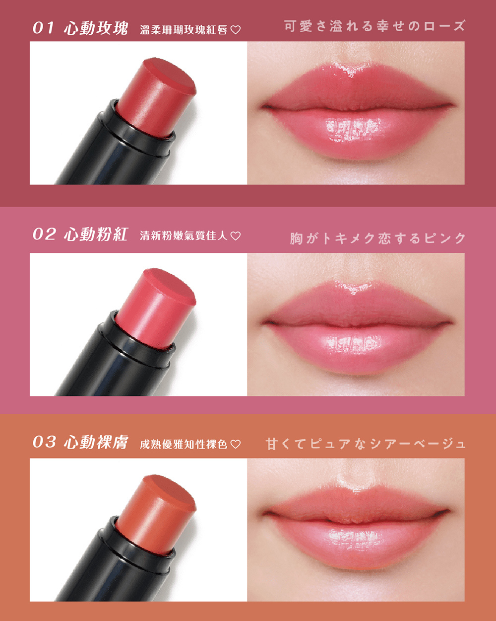 【品名】Fujiko水潤晶透唇膏 (01心動玫瑰/02心動粉紅/03心動裸膚)
