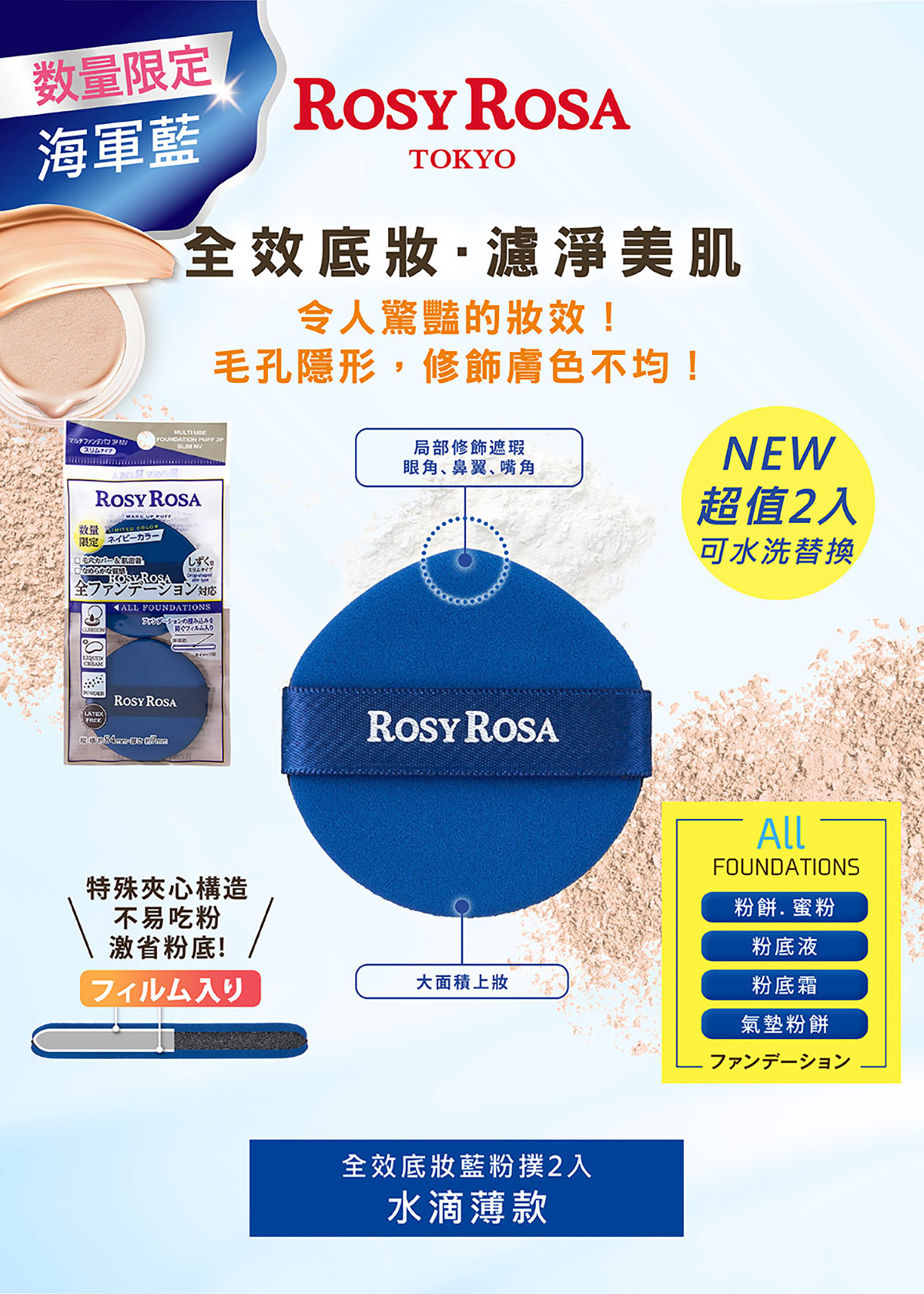 ✅特殊夾心構造,不易吃粉,激省粉底👍